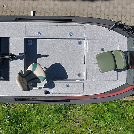 Dank der cleveren, zu 100 % nach höchsten Standards geschweißten Konstruktion, bei der die Seitenwände in einem besonderen Winkel mit dem Deck verbunden sind, entsteht ein besonders geräumiges Innenraumgefühl – für langlebige Qualität, maximale Sicherheit und ein Angelerlebnis, das man sonst nur von deutlich größeren Booten kennt.